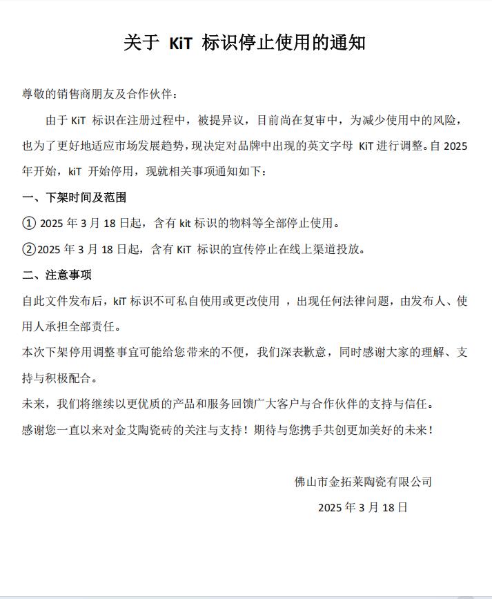 • 關(guān)于KIT標識停止使用的通知——關(guān)于KIT標識停止使用的通知